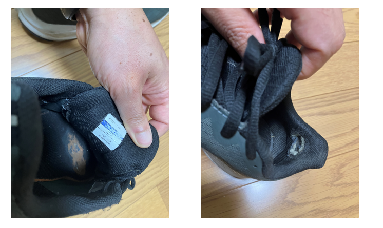 かかとの部分は内部のスポンジのようなものが取れましたが、実使用上は問題になりませんでした。