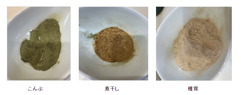 あとは粉末にしただしをブレンドしていくのですが、その前に個々の粉末だしを味見をします。