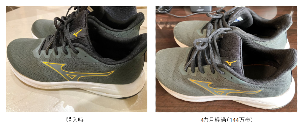 前回のウォーキングシューズは3カ月ぐらいで既に外観がボロボロになっていたのですが、今回は4月に履き始めたウォーキングシューズの4カ月経過した結果を簡単に報告します。