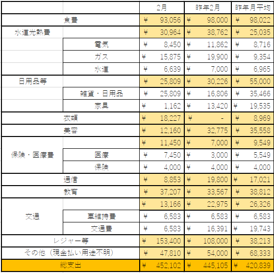 大変遅くなりましたが、2月分の家計簿の集計が終わりましたので簡単に紹介したいと思います。😁