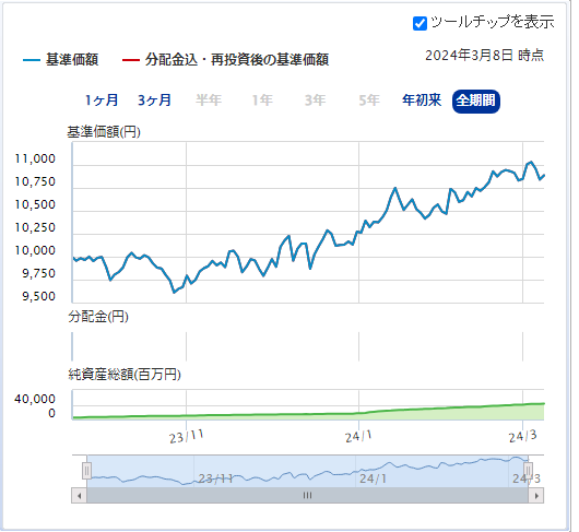 手数料が若干高め(0.4638%程度/年)なのですが、正直、株価上昇の期待値の方が上なのではないでしょうか?