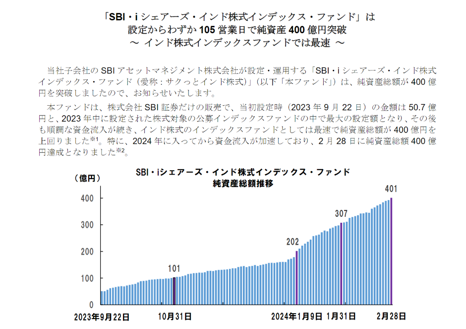 ということで、前から気になっていたSBI-SBI・iシェアーズ・インド株式インデックス・ファンドに結構な金額を投資してみました。