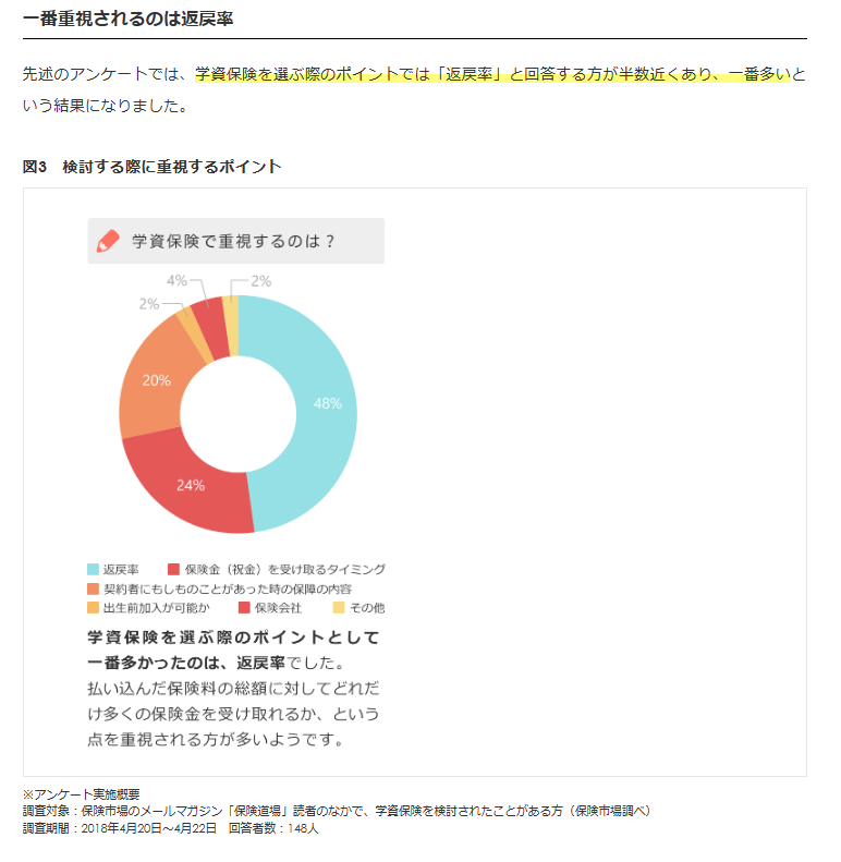 ちなみに学資保険に入られている方が重要視されているポイントは返戻率・・とのことですが、学資保険の返戻率なんて所詮 数%・・