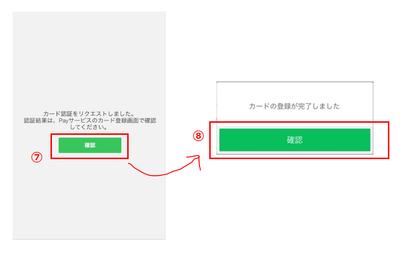 ⑧:カードの登録が完了したという通知が来るので「確認」をタップ