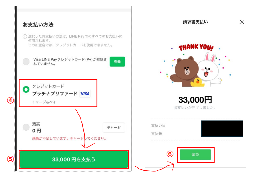 ⑥:「確認」を押して支払い終了です