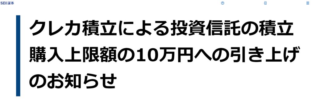 私が使っている新NISAで使っているSBI証券でクレジットの積み立て上限額が現状の5万円から10万えんへ引き上げられるという発表がありました!!😆😆