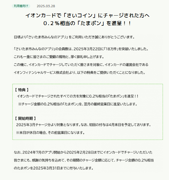 【さいたま市みんなのアプリ】イオンカードからのチャージでポイント二重取りが可能に