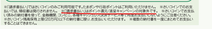 残念ながら、さいコインで一部の税金は支払うことはできますが、ポイント(たまポン)は還元されません!!