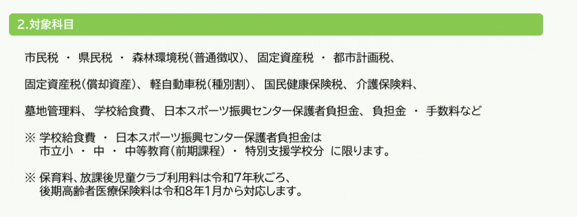 ただし、「固定資産税」は市町村に支払うので【さいたま市みんなのアプリ】の支払い対象となります。