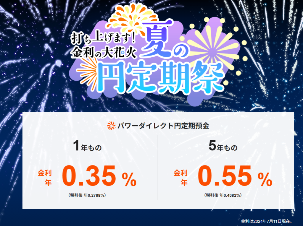 例えば、2024年7月11日現在では、下記のような「夏の円定期祭」のキャンペーンが開催されています。