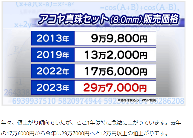 ちなみに最近の真珠の売値は好調のようで下記のような情報がある。