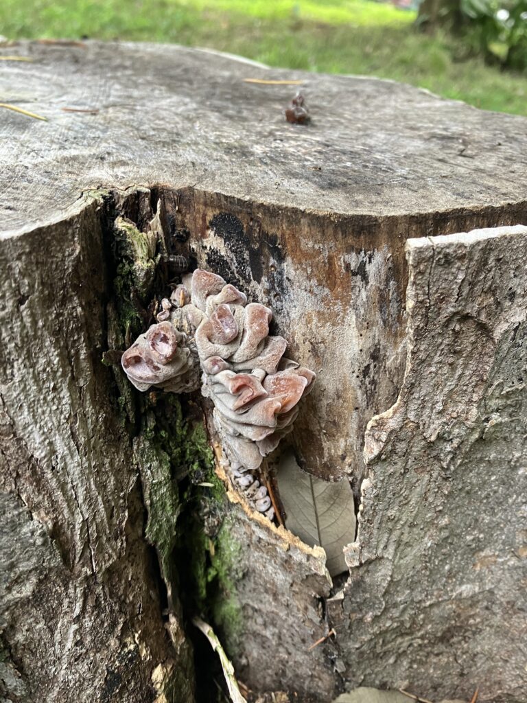 人が伐採した切り株を中心に探してみると、ありました!ありました!アラゲキクラゲってやつです!🤣↓↓